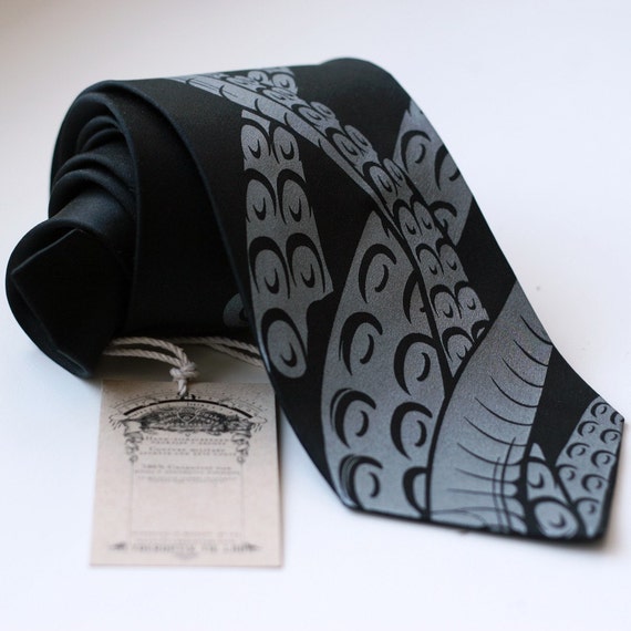 Octopus Tie Sucker Tentacles Black Silk Necktie Black Tie Etsy Canada